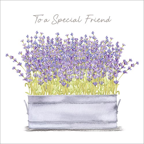 Home / Greeting Cards / General Cards / Floral & Flower Cards / A033 Lavender Special FriendA033 Lavender Special Friend£2.50 152 x 152 mm Blank inside for your own personal message White envelope included Matt textured & embossed Printed in the UK on FSC certified paper - A033 Lavender Special Friend quantity + Add to basket Categories: All cards, Birthday Cards, Floral & Flower Cards