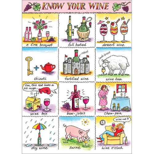 Home / Greeting Cards / General Cards / Humorous Cards / A080 Know your wineA080 Know your wine£2.50 127 x 178 mm Blank inside for your own personal message White envelope included Matt textured Printed in the UK on FSC certified paper - A080 Know your wine quantity + Add to basket Categories: All cards, Hobbies & Interests, Humorous Cards